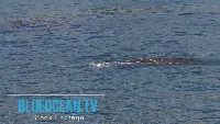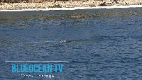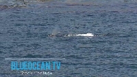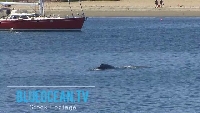 | Gray whale in Santa Barbara Harbor - near sailboat |