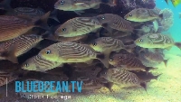 | schooling spottail grunts, Cortez damsel on coral reef |